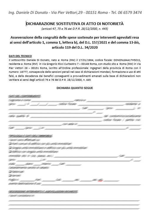 E’ un documento tecnico che attesta la possibilità di richiedere la cessione del credito o lo sconto fattura per i lavori di ristrutturazione eseguiti o le forniture per lavori effettati.